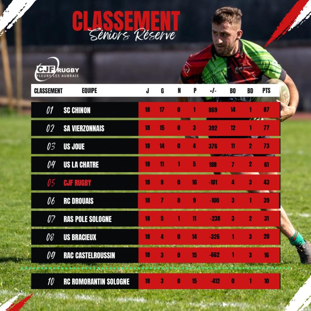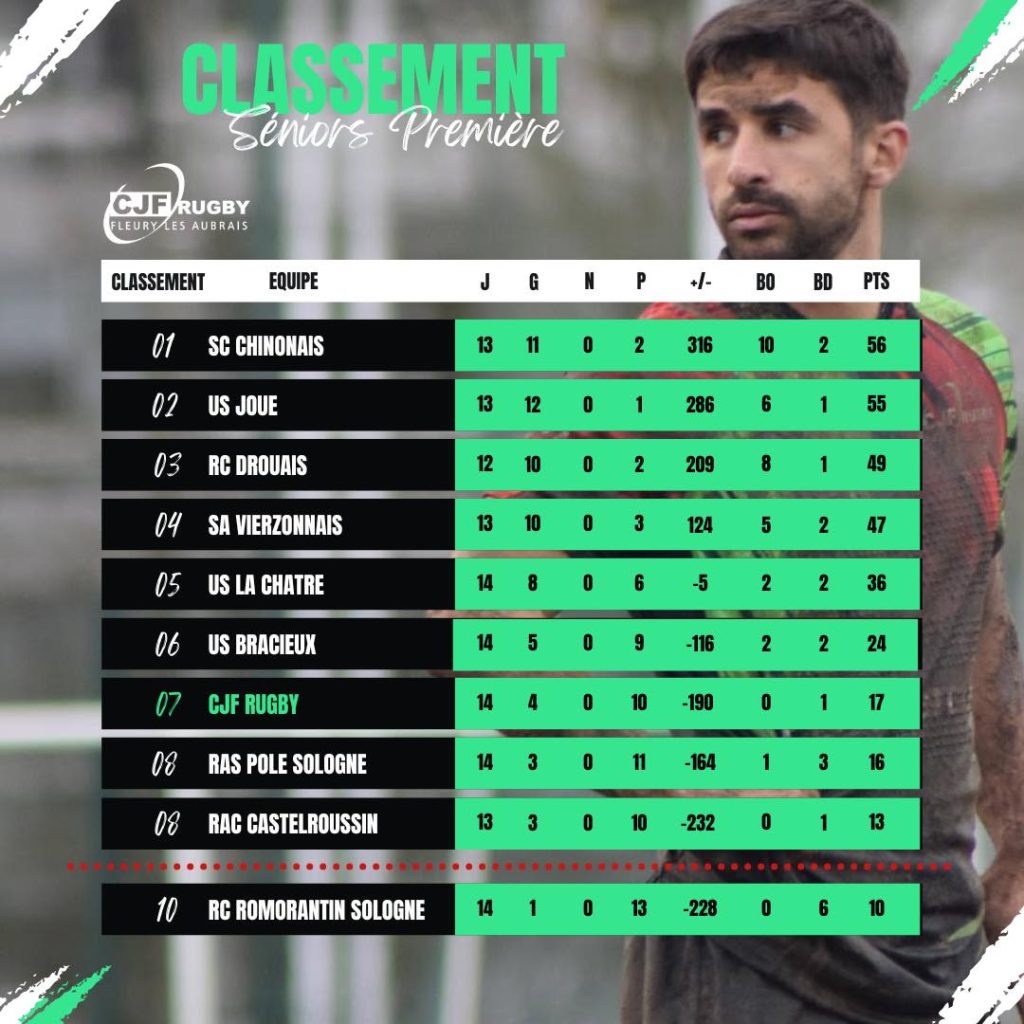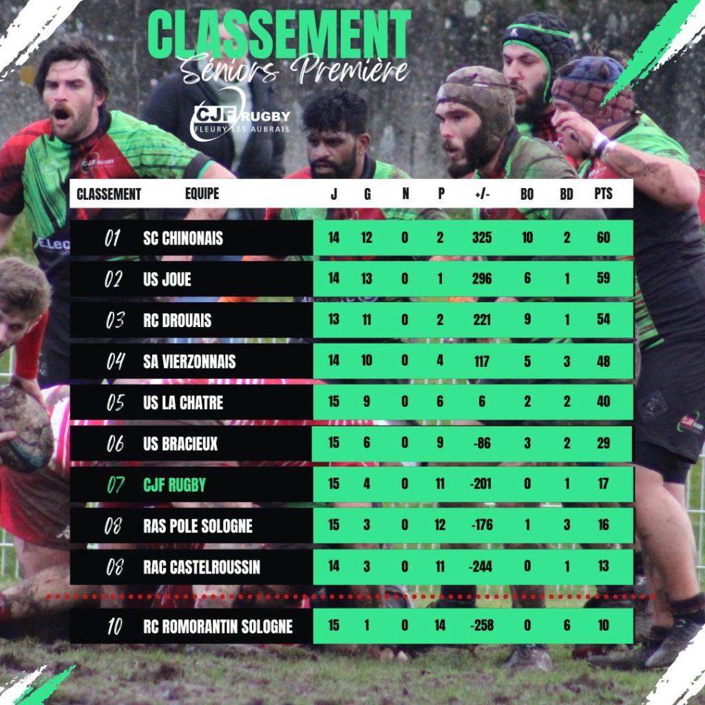 CJF RUGBY Fleury-les-Aubrais Facebook Instagram A LA UNE 🏉 EVENEMENTS DU WEEK END 🏉 ⚫🟢🔴 CLASSEMENT REGIONALE 1 AUTRES CHAMPIONNATS Cliquez ici 🏉CALENDRIERS SAISON 2025 2026