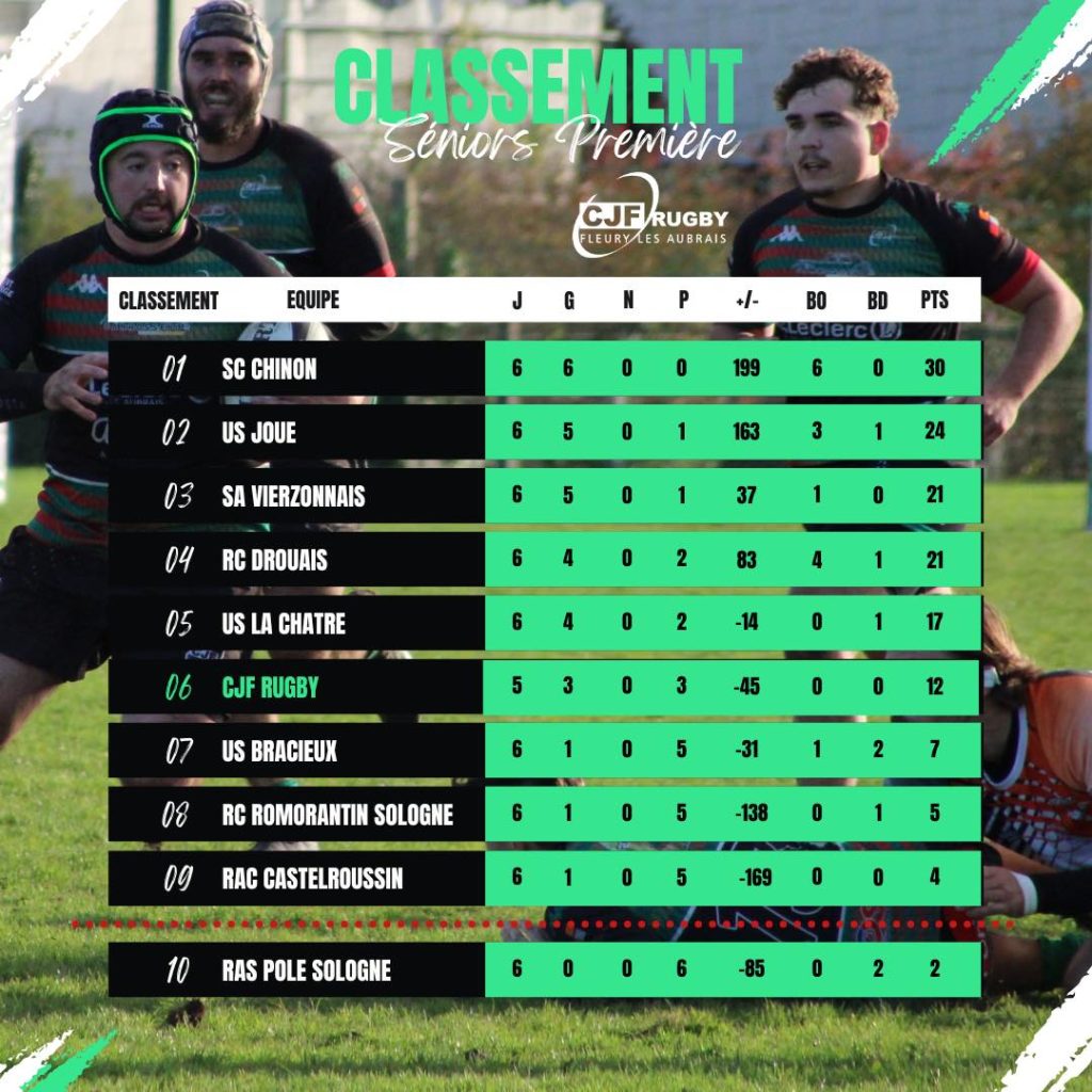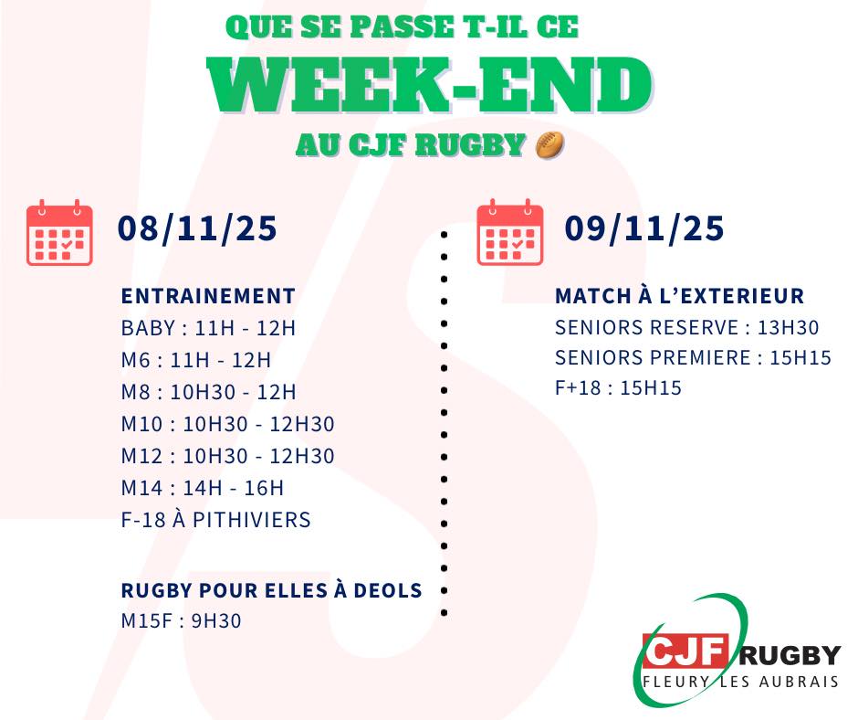 CJF RUGBY Fleury-les-Aubrais Facebook Instagram A LA UNE 🏉 EVENEMENTS DU WEEK END 🏉 ⚫🟢🔴 CLASSEMENT REGIONALE 1 AUTRES CHAMPIONNATS Cliquez ici 🏉CALENDRIERS SAISON 2025 2026